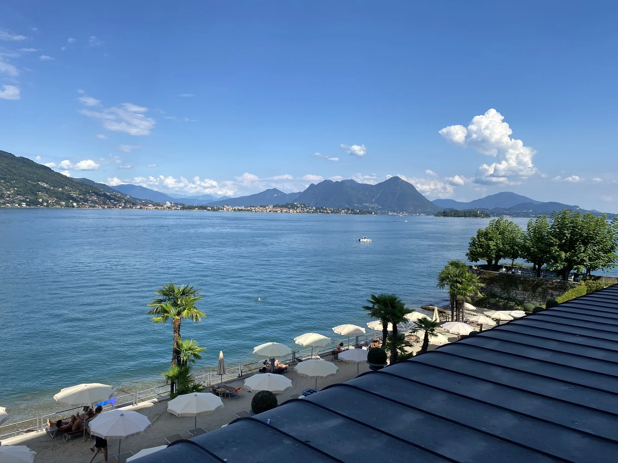 We stayed at the gorgeous Hotel Splendid in Baveno and highly recommend it for lakeside charm and comfort. The hotel was spacious with amazing views of the lake. We also really liked the small patch of beach and the nice beach (lakeside) bar, which was perfect for an afternoon drink. If you are looking for quiet luxury along Lake Maggiore, Hotel Splendid is a great choice!